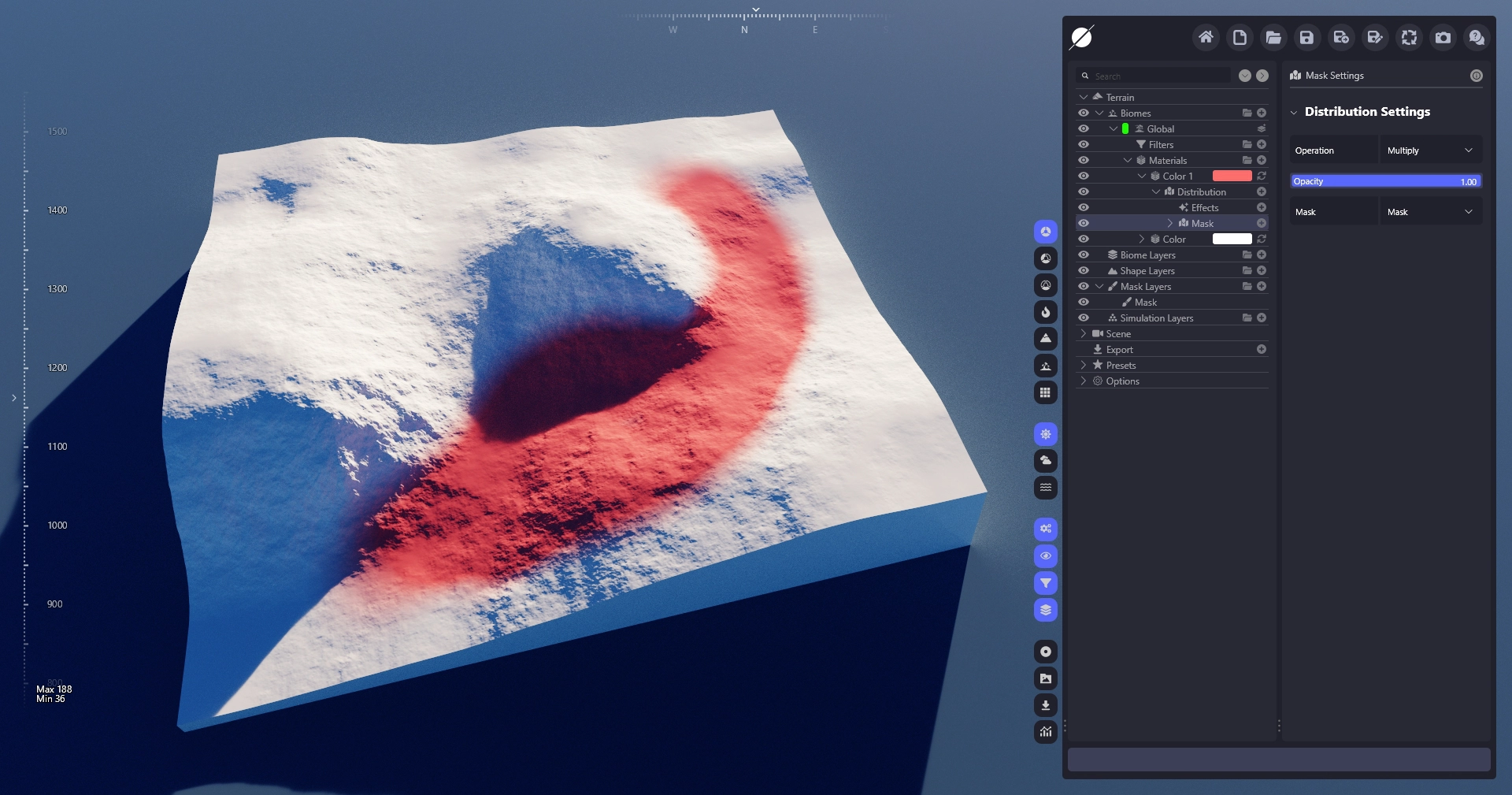 The Mask distribution selects an area based on a mask layer.